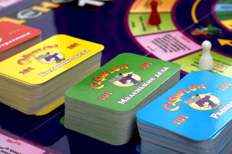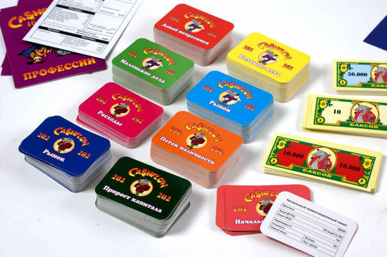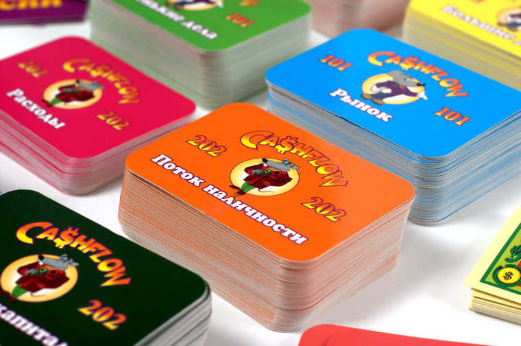 Некоторые производители грешат тем, что просто сокращают количество карточек (удаляют «лишние» и «не очень нужные») таким образом, чтобы эти карточку удобно и экономно располагались у них на печатном листе. Представляете как обидно, если на листе, к примеру, компактно помещается 25 карточек, а напечатать надо 32? Приходится переводить целый печатный лист ради 7 карточек! А ведь все это деньги, затраты, себестоимость! Поэтому многие производители попросту подгоняют количество карточек под ту сумму, в которую они хотят вписаться при печати своей игры. Так в наборах, в которых у Кийосаки изначально было 36 карточек, потом оказывается только 24 карточки. А бывает и так, что какие-то наборы карточек исчезают совсем…