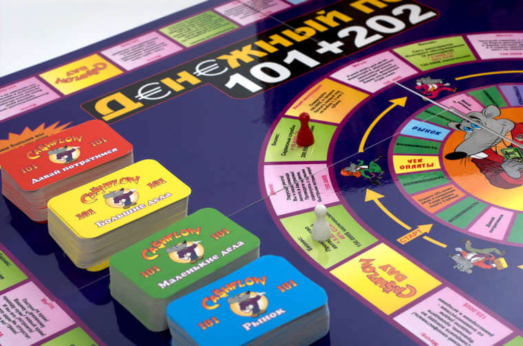 Мы никогда не вмешиваемся в содержание игры - мы позволяем себе работать только с ее дизайном и красочностью. Мы не выбросили из игры ни одной карточки. Все карточки, которые предусмотрены в оригинальной игре Кийосаки, - вы найдете и в нашей игре "Денежный поток". Обратите внимание, как много их должно быть в каждом игровом наборе!