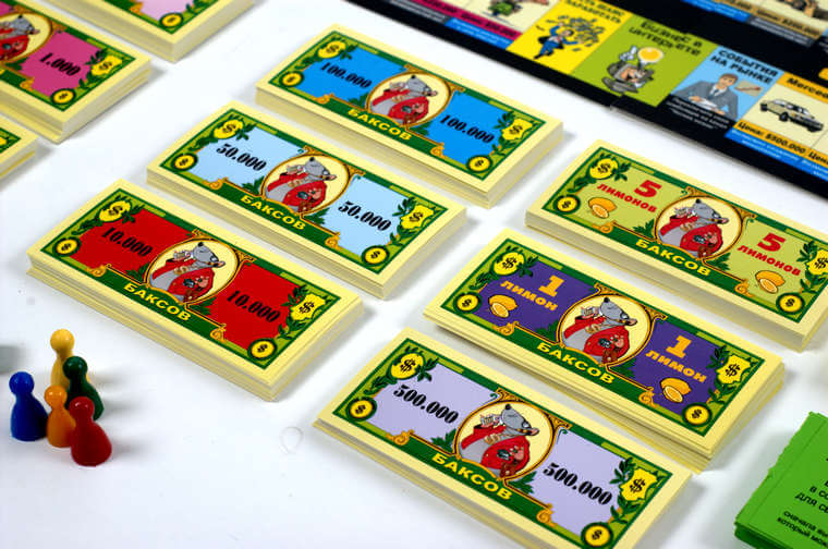 - Комплект игровых денег (12 номиналов по 50 купюр)
