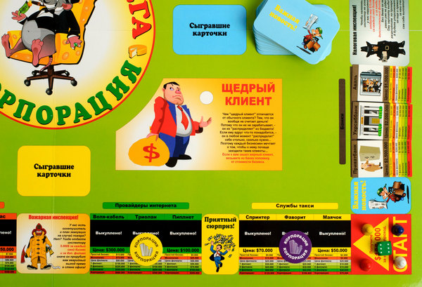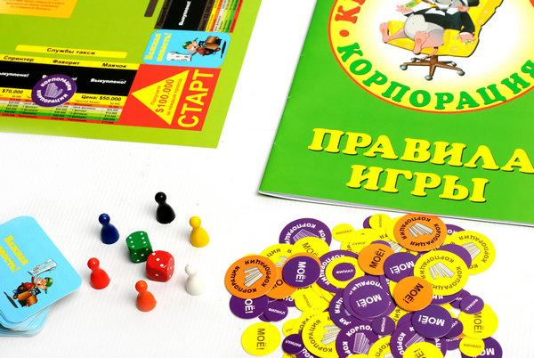 - Фишки собственности «Мое!», «Филиал» и «Корпорация» (8 цветов х 150 шт)